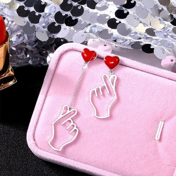 愛のジェスチャーの新しいファッション女性925シルバーニードル韓国語バージョン非対称イヤリングジュエリートレンド人格学生愛イヤリング気質野生の耳のジュエリー