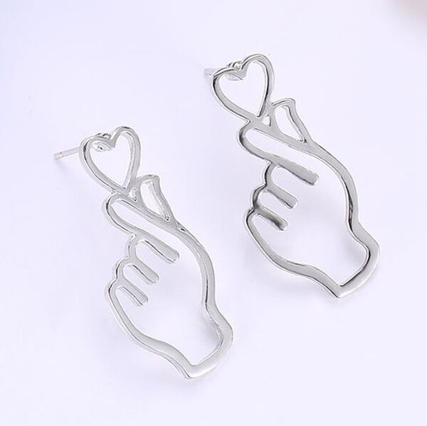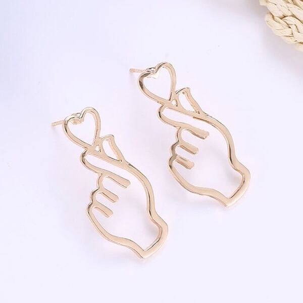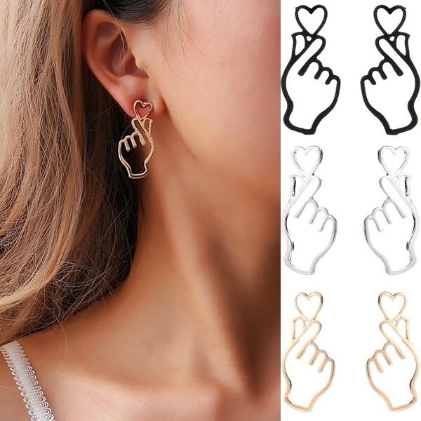 韓国 ラブ ピアス 2pc 1set 黒 金 シルバー メタル ラブピアス くり抜き ハートジェスチャー BTSハート スタッドピアス