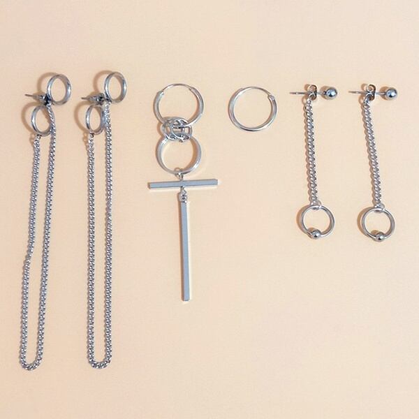 KPOP BTS着用 ピアス 6個セット メンズピアス ユニセックス メンズアクセサリー ロングタッセル シルバー チェーン