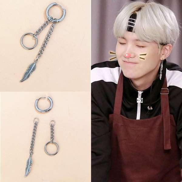 BTS SUGA 着用アイテムKPOP BTS ブレード ピアス 2個セット メンズピアス ユニセックス メンズアクセサリー ロングタッセル シルバー チェーン
