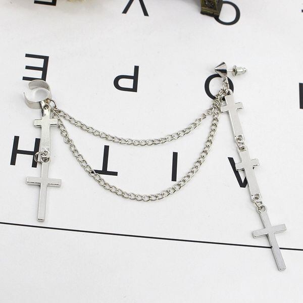片耳ピアス クロスチェーンタッセル K-POP ユニセックス ピアス