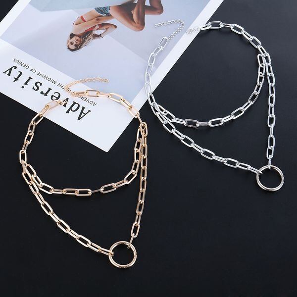 2連 リングチェーン KPOP シルバー アーミー ネックレス メンズネックレス ユニセックス メンズアクセサリー