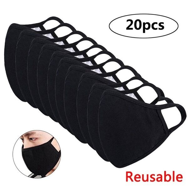 20個セット 黒マスクセット ストリートファッション 防塵 綿 ユニセックス フェイスマスク 冬 暖かい 布マスク