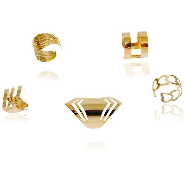 5ピース セット ゴールド カットアウト ミディリング ヴィンテージパンク