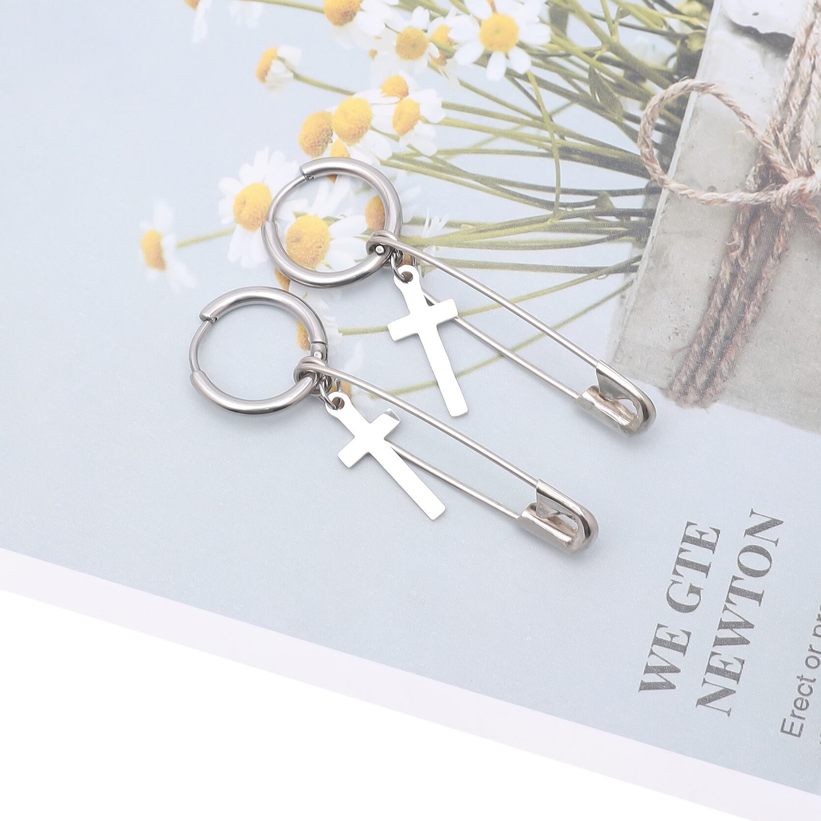KPOP 韓国スタイル 安全ピン クロス シルバーピアス 2pc 1set