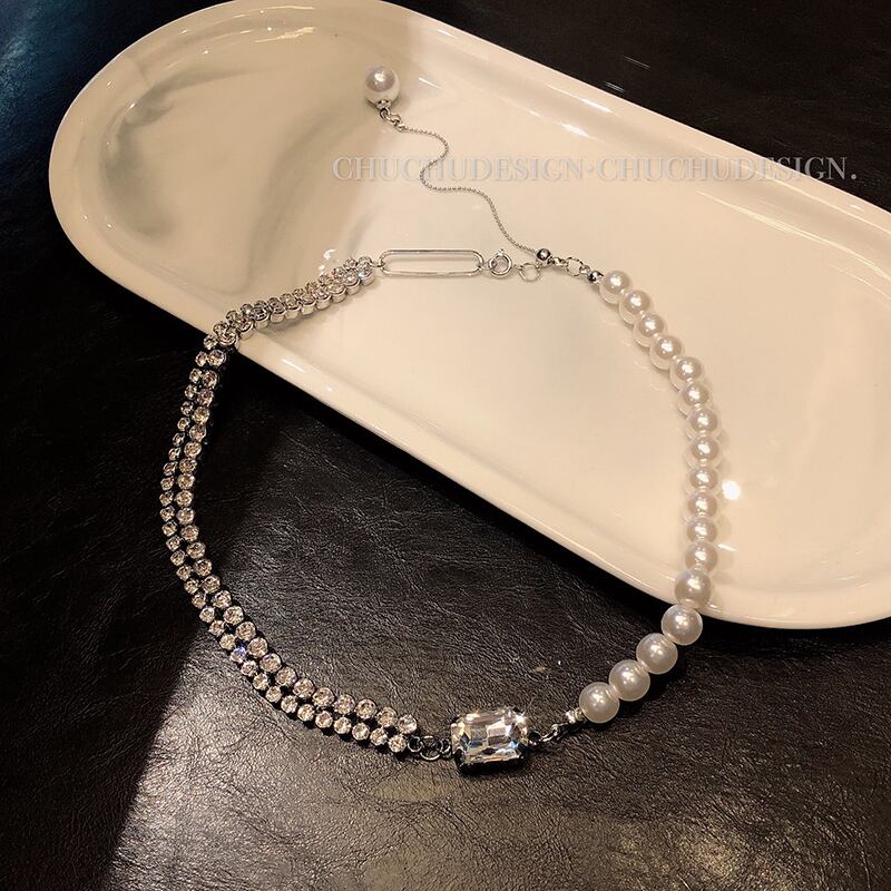 ハーフビジュー ポイントドロップパール ネックレス