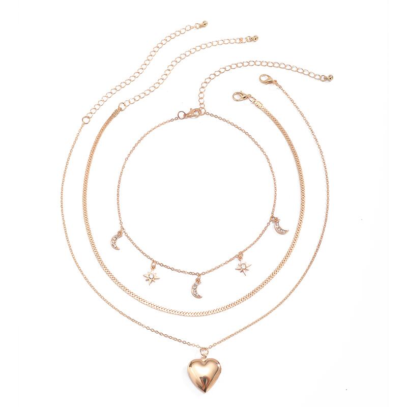 星と月がモチーフのチョーカーネックレス、プレーンネックレス、ハートのロケットのネックレスの3セットです