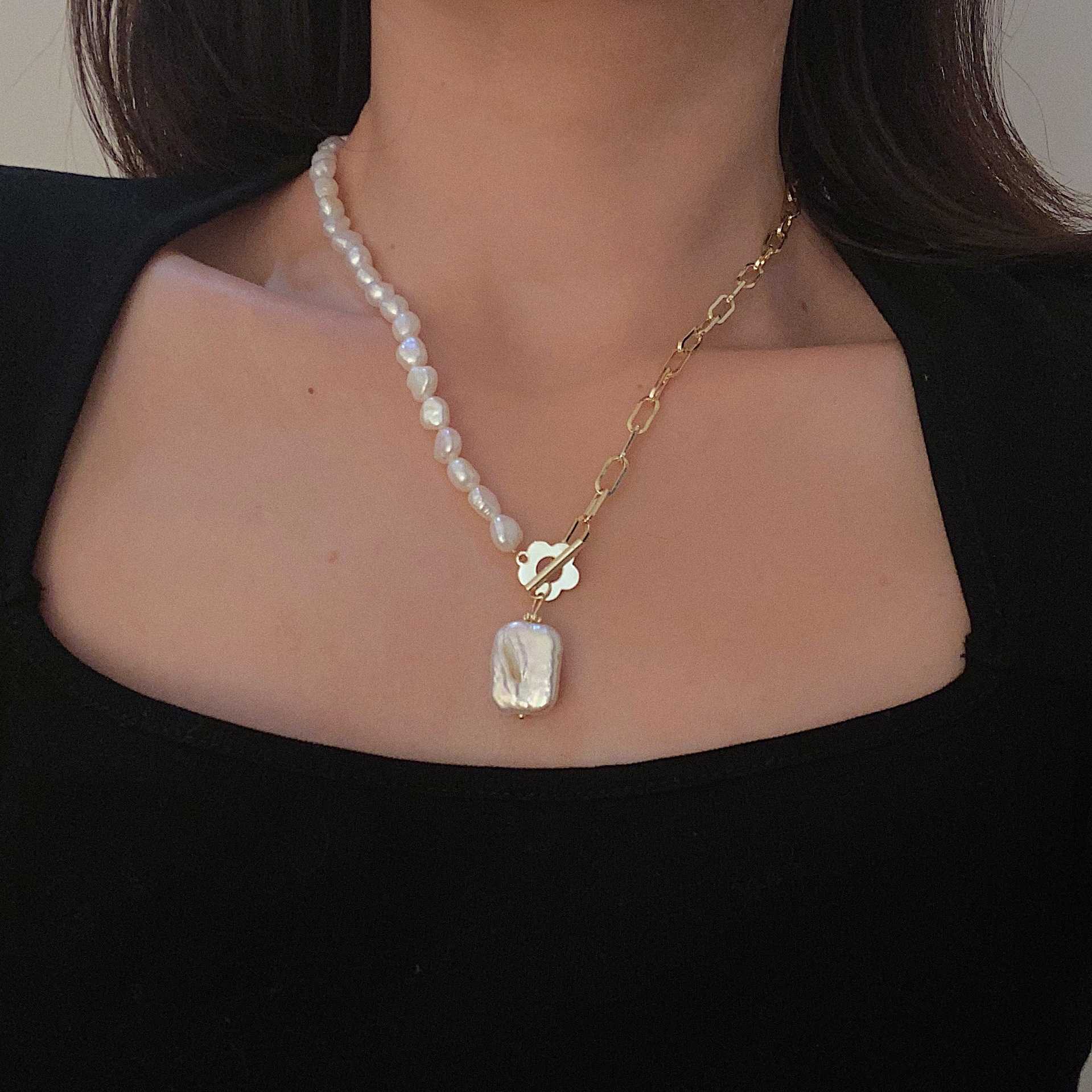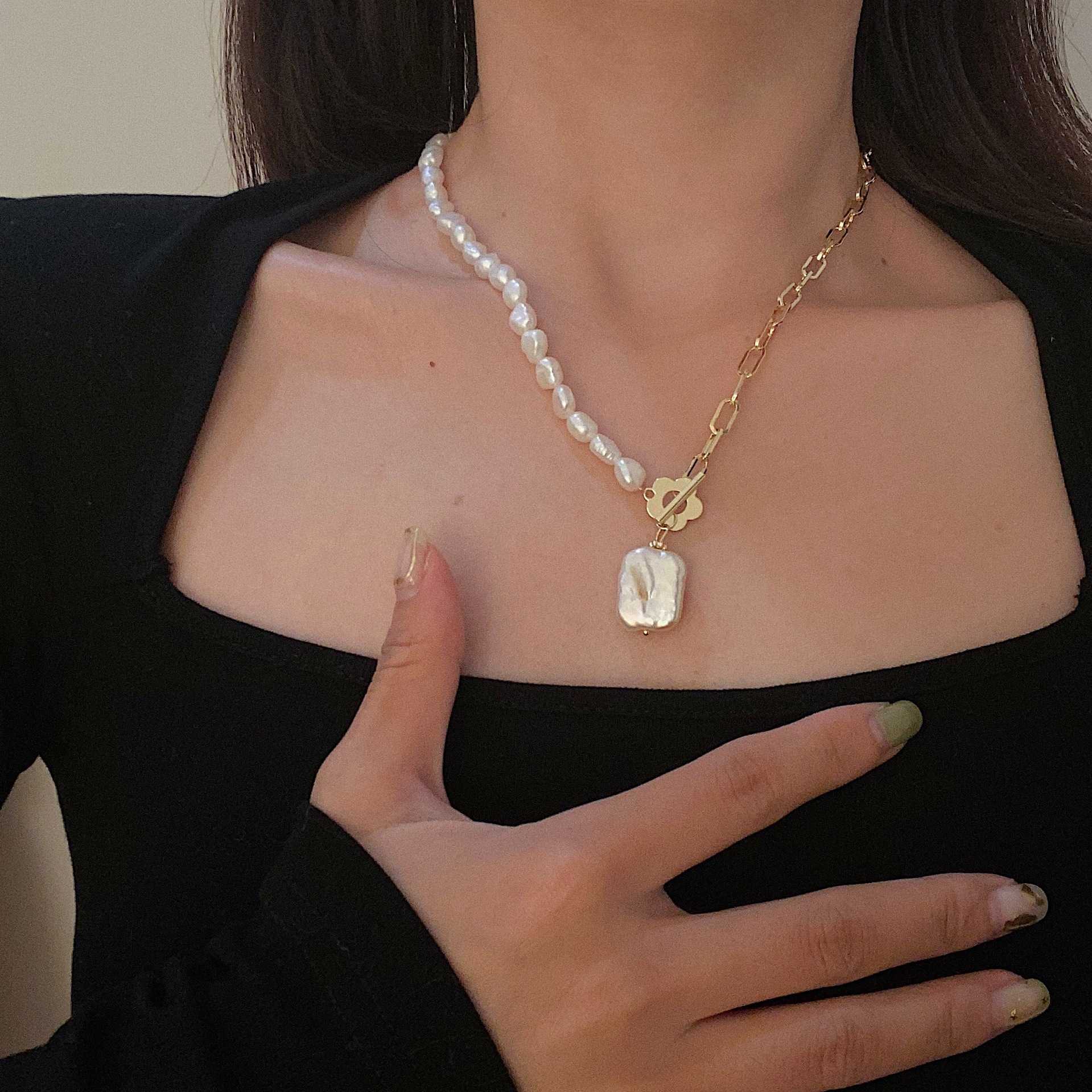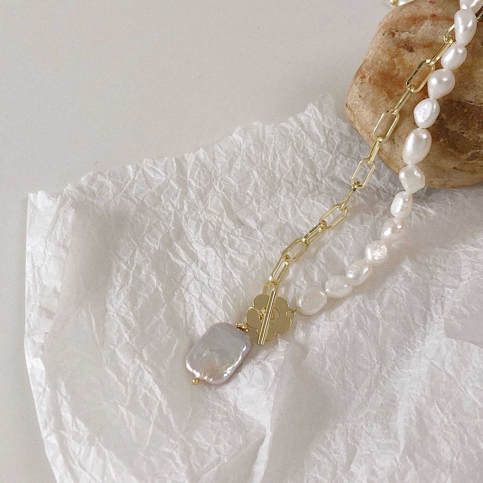 ナチュラルスクエアパール フラワーフロントネックレス